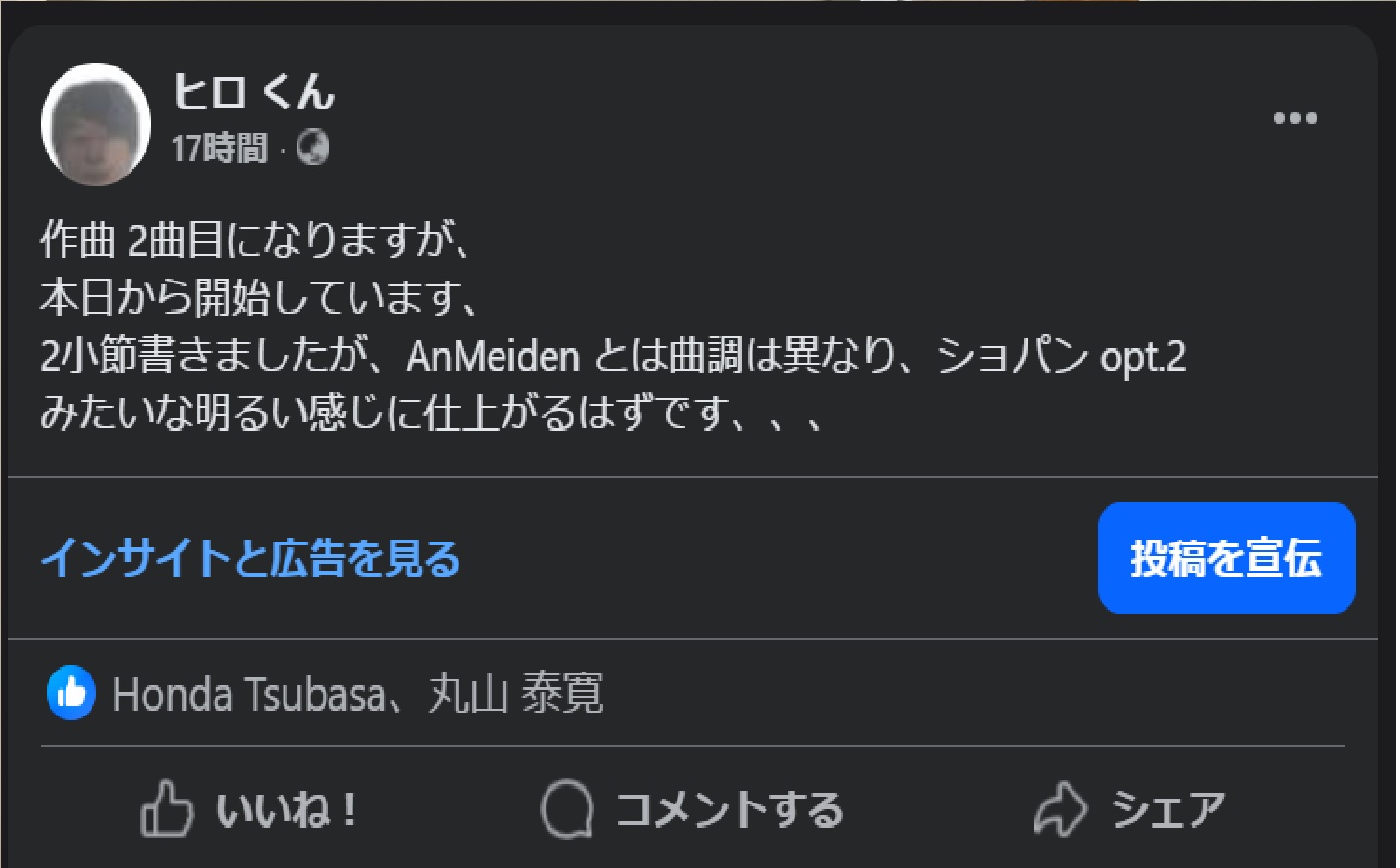 作曲 2曲目になりますが、本日から開始しています、2小節書きましたが、AnMeiden とは曲調は異なり、ショパン opみたいな明るい感じに仕上がるはずです、、、